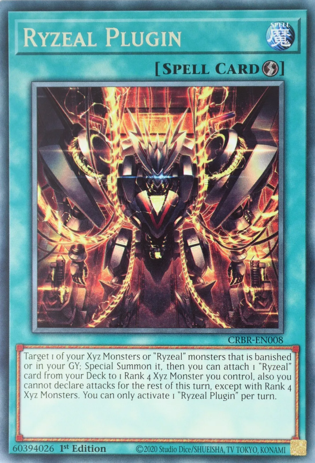 Target 1 of your Xyz Monsters or "Ryzeal" monsters that is banished or in your GY; Special Summon it, then you can attach 1 "Ryzeal" card from your Deck to 1 Rank 4 Xyz Monster you control, also you cannot declare attacks for the rest of this turn, except with Rank 4 Xyz Monsters. You can only activate 1 "Ryzeal Plugin" per turn.